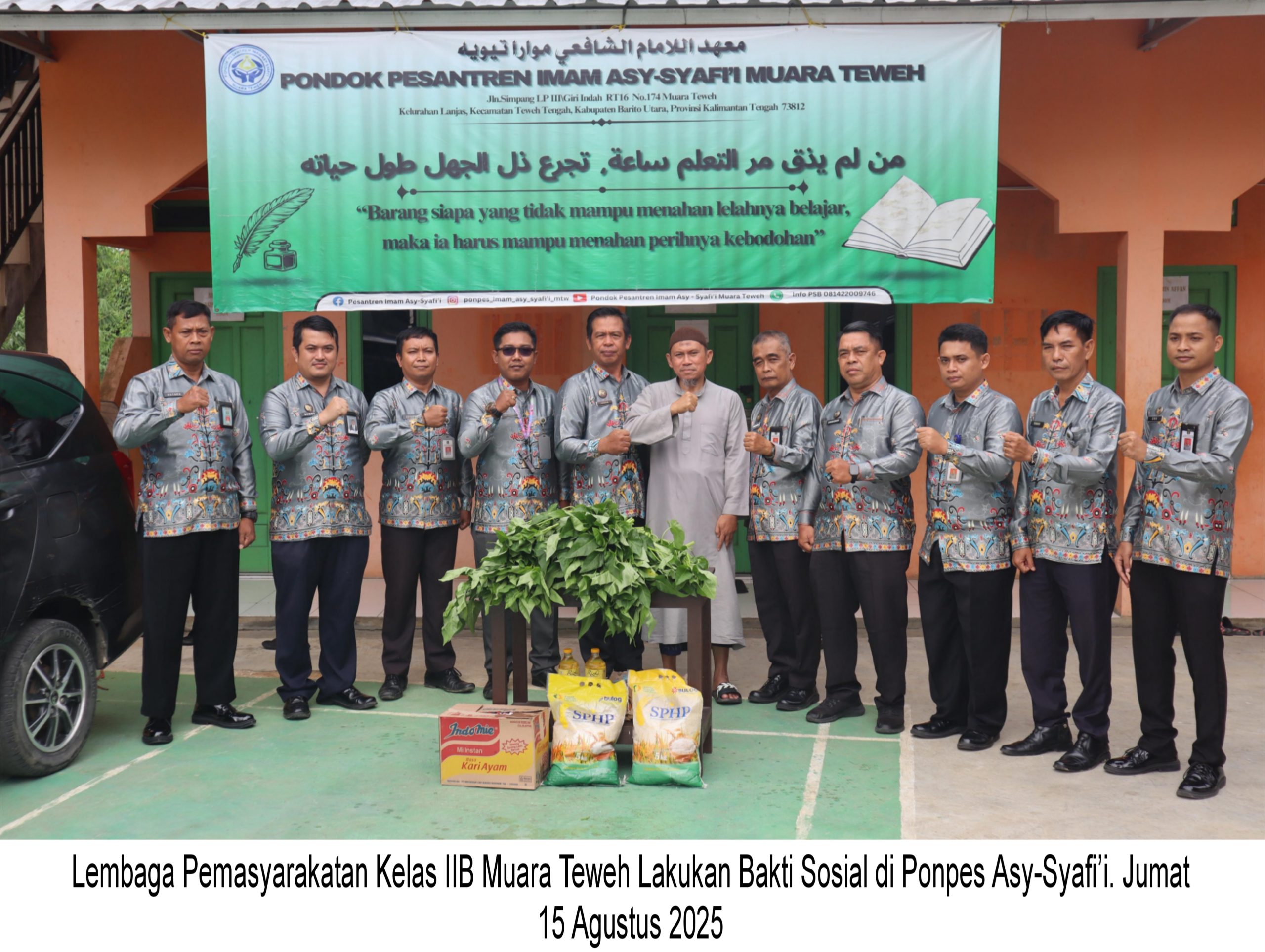 MUARA TEWEH  — Lembaga Pemasyarakatan (Lapas) Kelas IIB Muara Teweh melaksanakan kegiatan bakti sosial (Baksos) di Pondok Pesantren (Ponpes) Imam Asy-Syafi’i Muara Teweh.