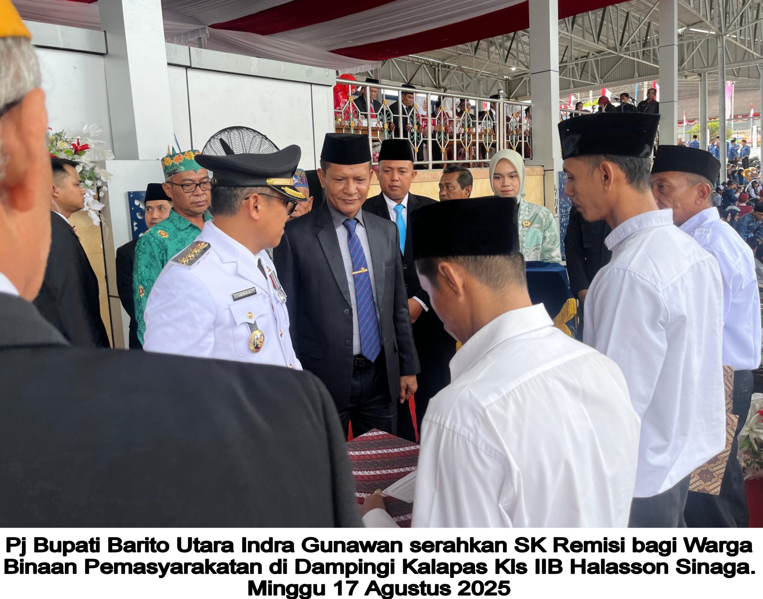 MUARA TEWEH – Dalam rangka peringatan Hari Ulang Tahun ke-80 Kemerdekaan Republik Indonesia, Penjabat (Pj) Bupati Barito Utara (Indra Gunawan) secara resmi menyerahkan remisi (RU I dan RU II) serta remisi Khusus Dasawarsa Presiden kepada narapidana Lembaga Pemasyarakatan (Lapas) Kelas IIB Muara Teweh, Minggu (17/8/2025).